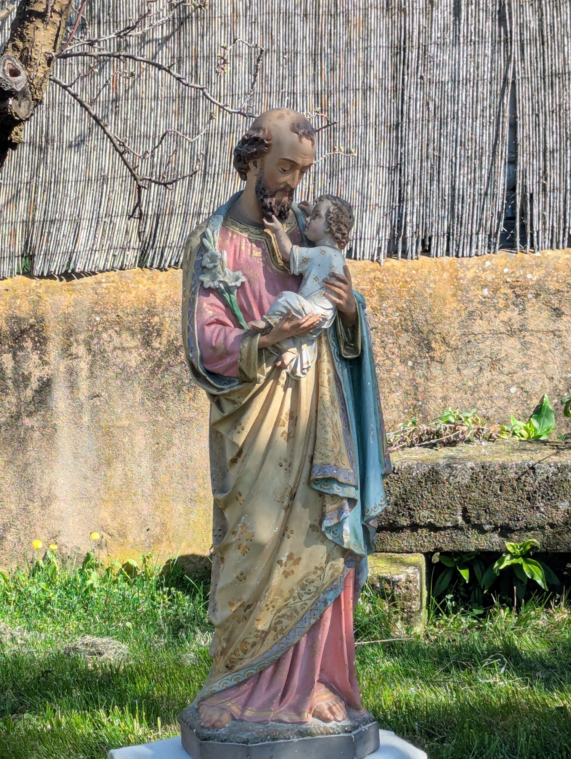 Le père Barthélémy revêtu d’une chasuble qui reprend le nom de chaque village du secteur paroissial de la Montagne de Lure et Cyrille Prache (diacre) dont l’étole reprend les mêmes informations ! Merci aux fabuleuses petites mains du Secours Catholique de Banon !