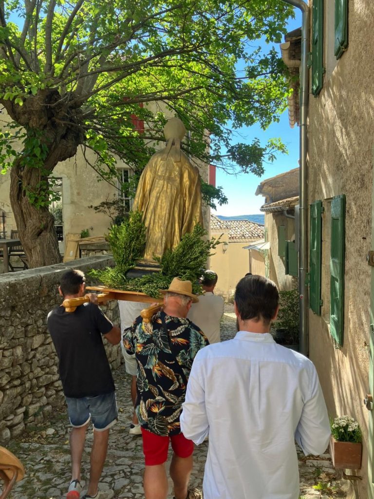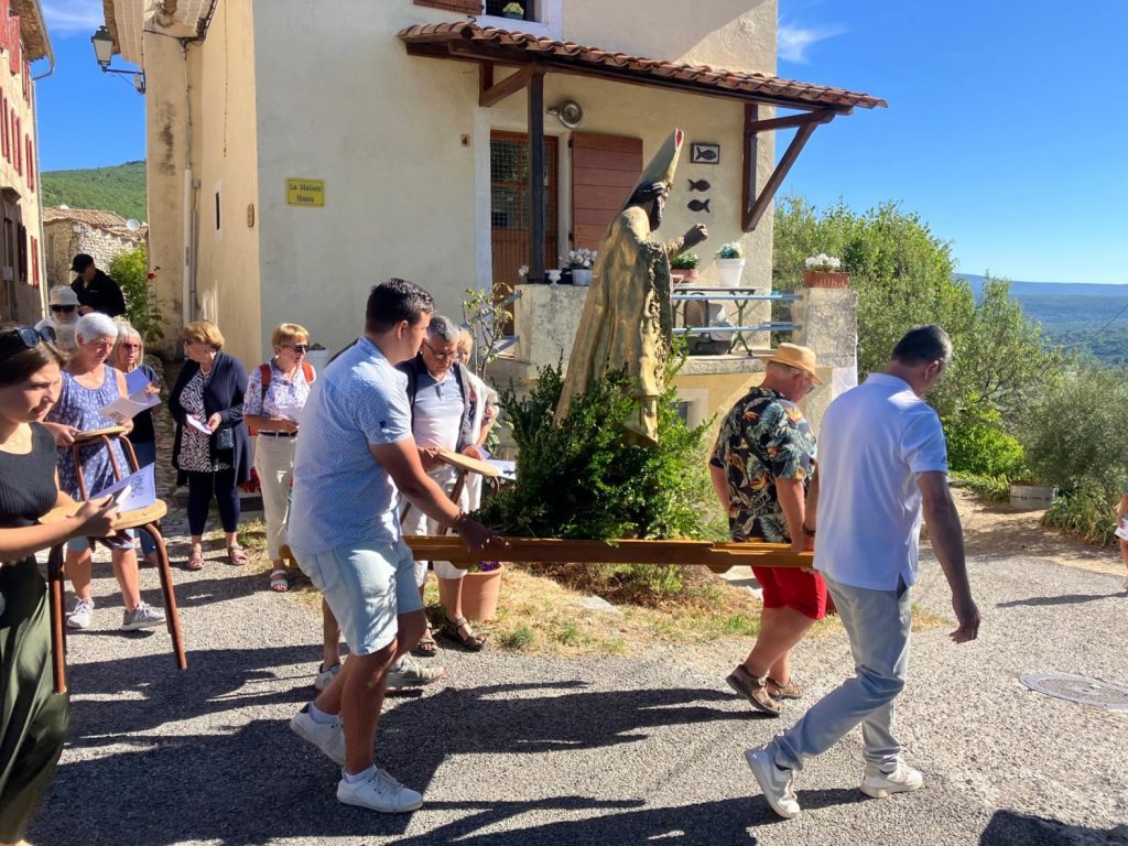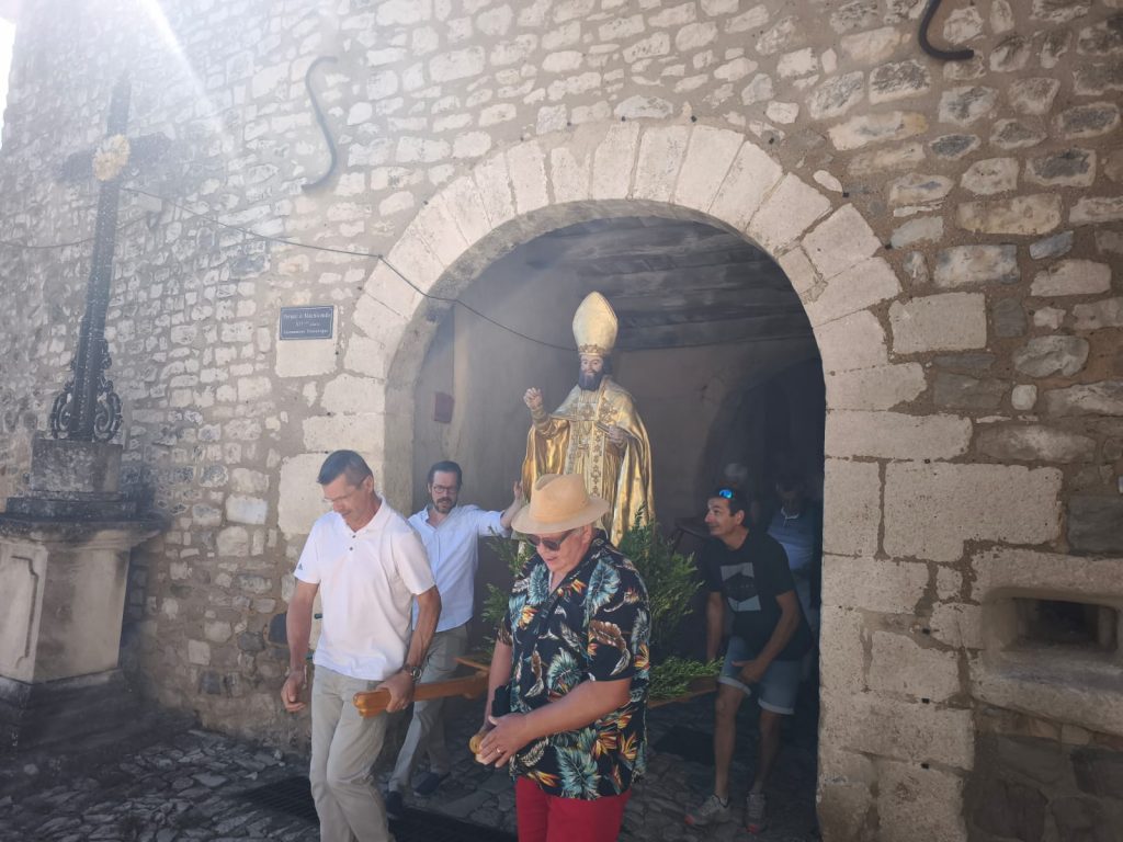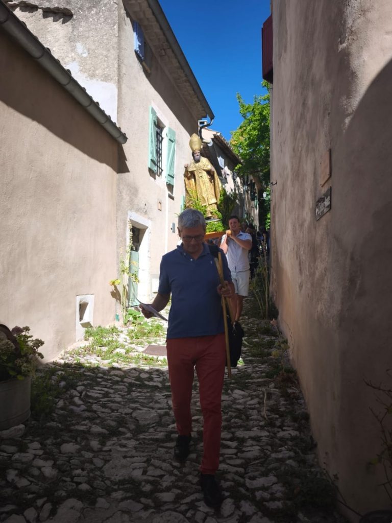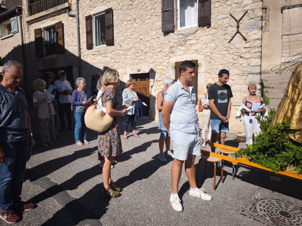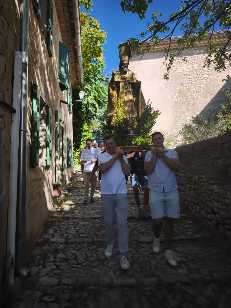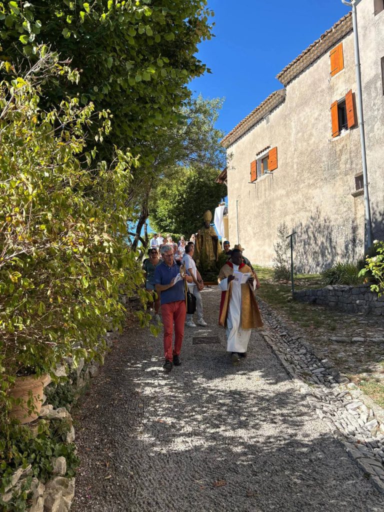 Procession qui est partie de l’église Haute jusqu’à la place du village où la messe sera célébrée.