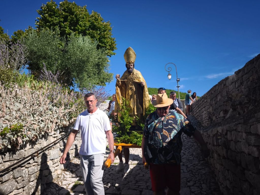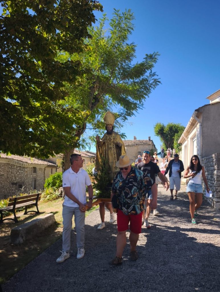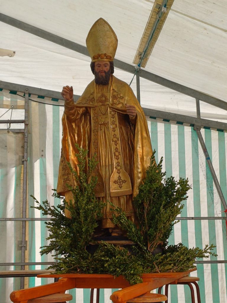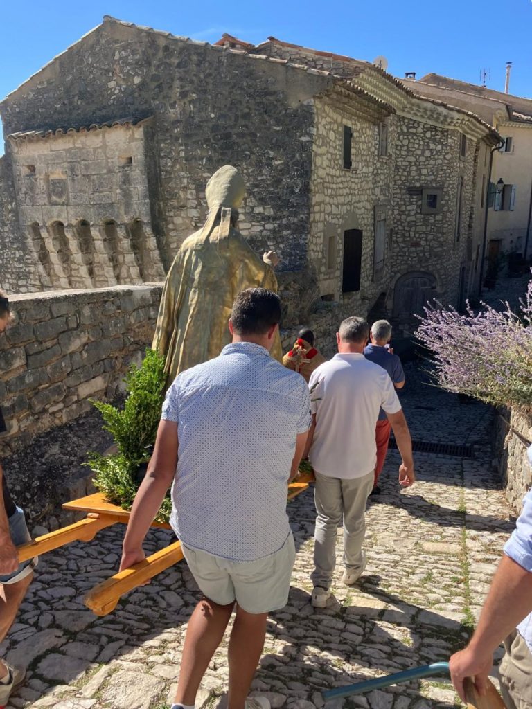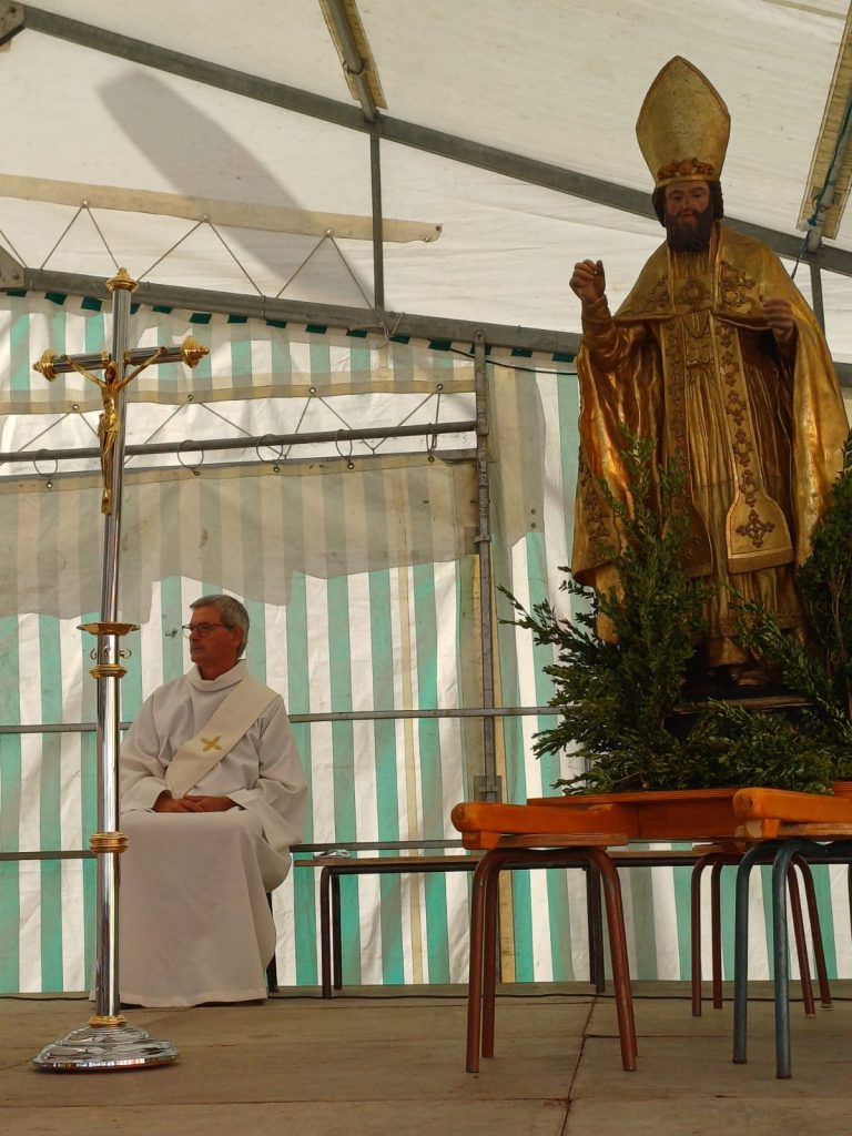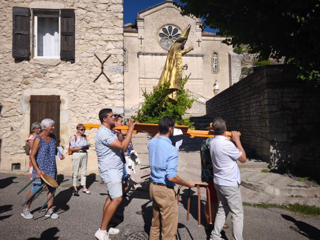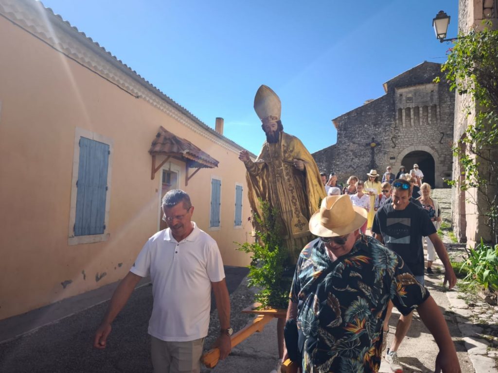 Procession qui est partie de l’église Haute jusqu’à la place du village où la messe sera célébrée.