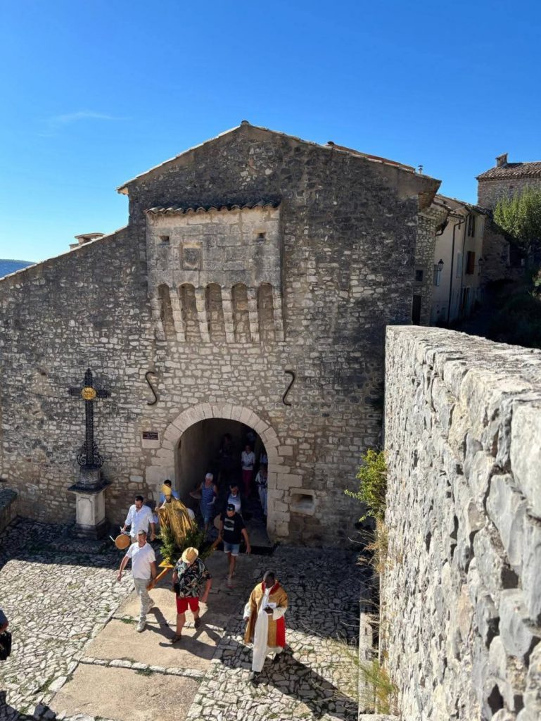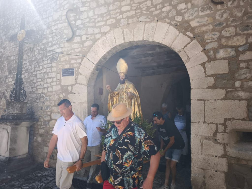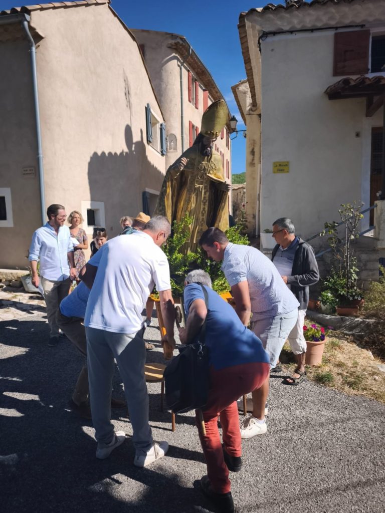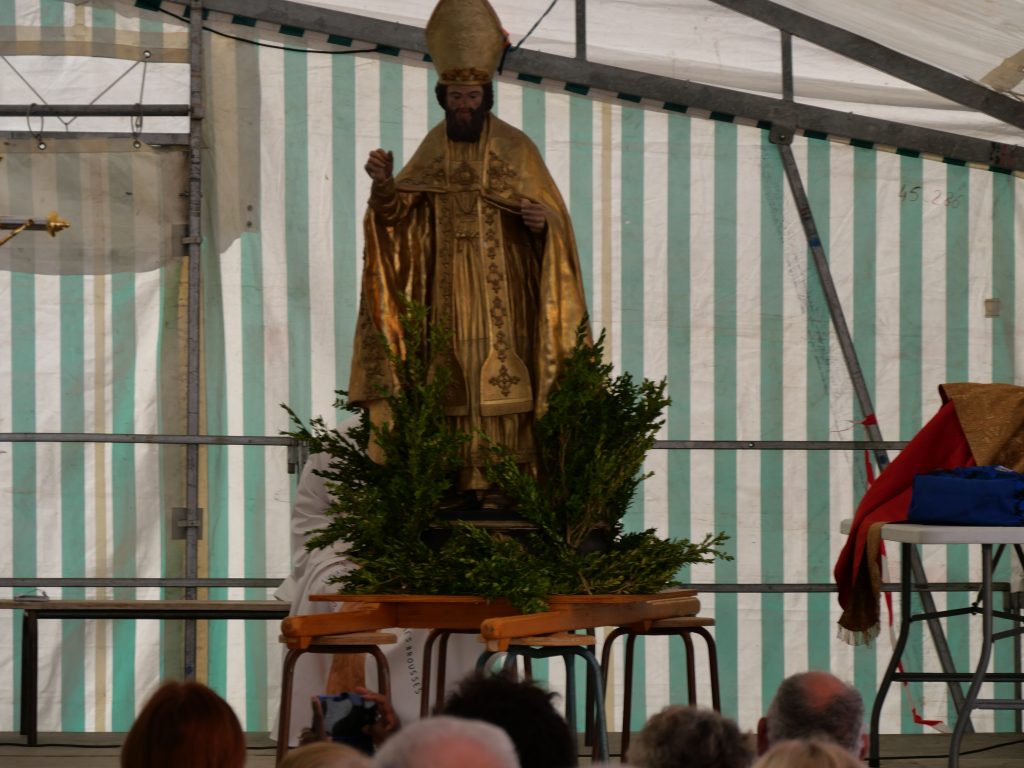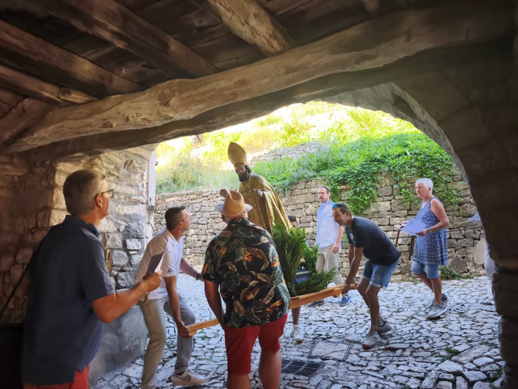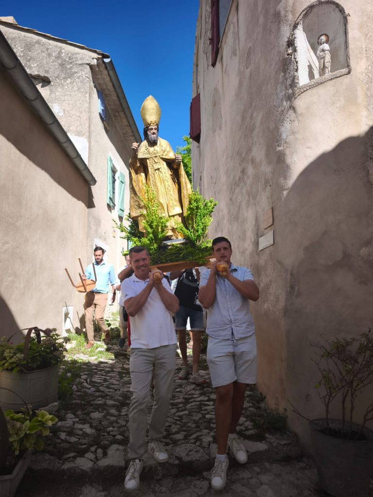 Procession qui est partie de l’église Haute jusqu’à la place du village où la messe sera célébrée.