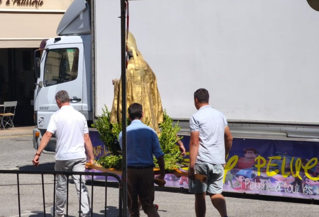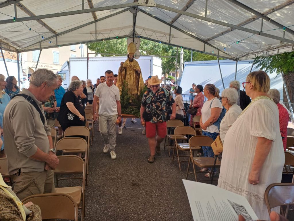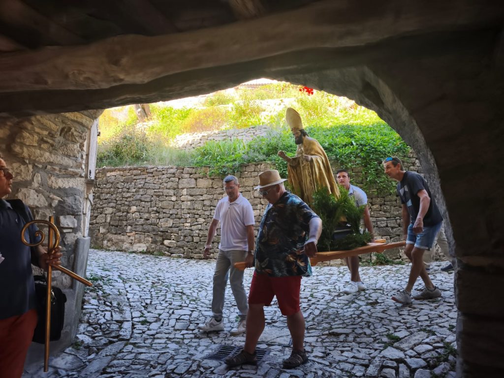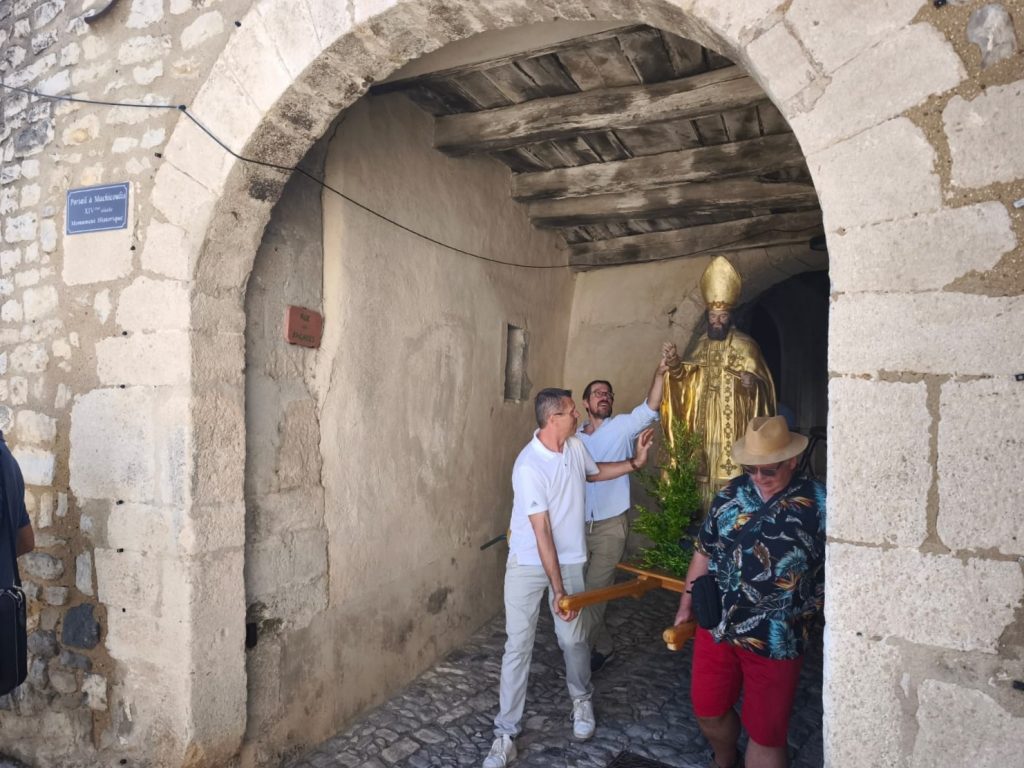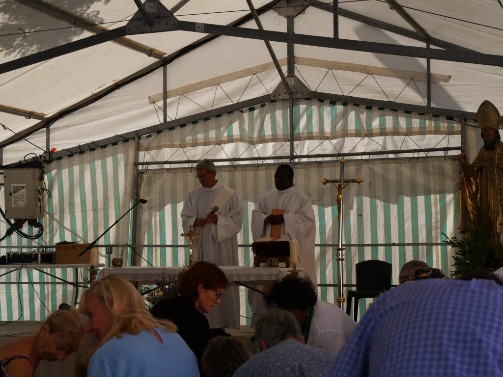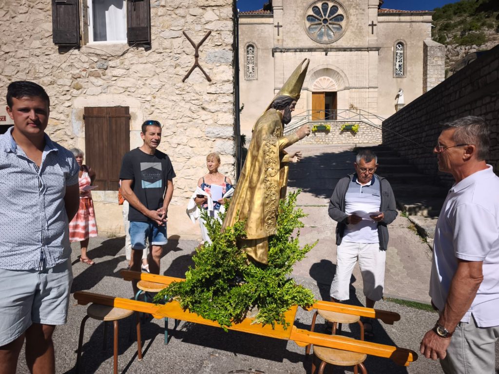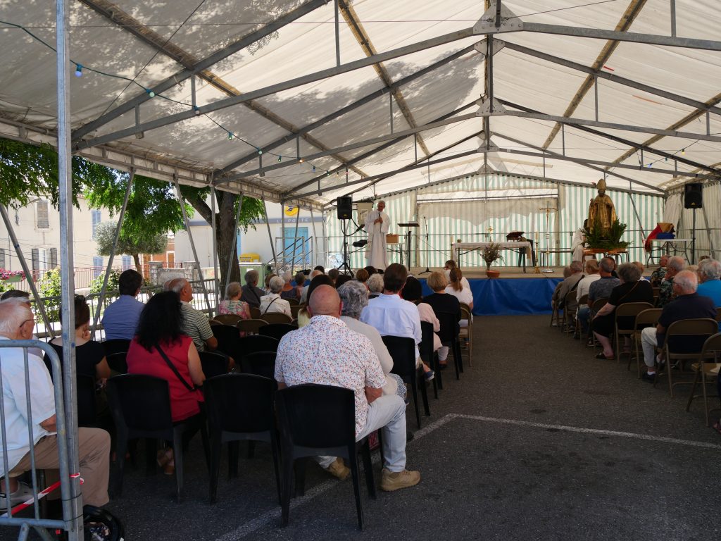 Procession qui est partie de l’église Haute jusqu’à la place du village où la messe sera célébrée.