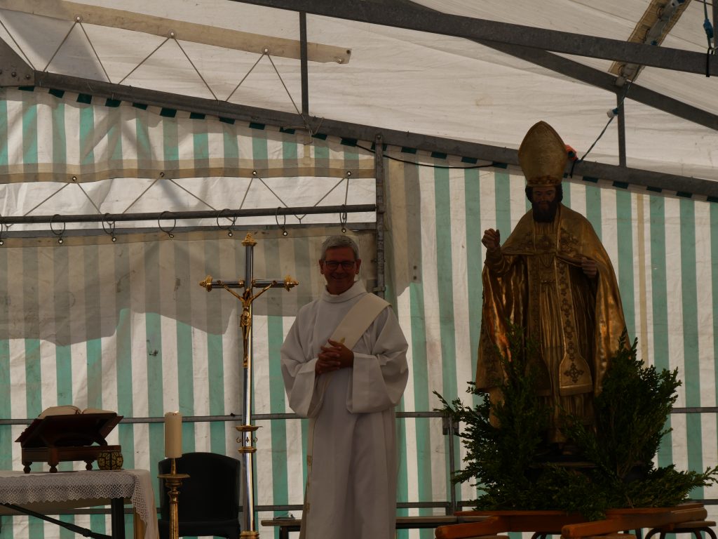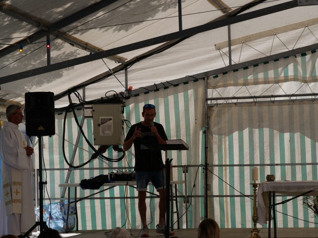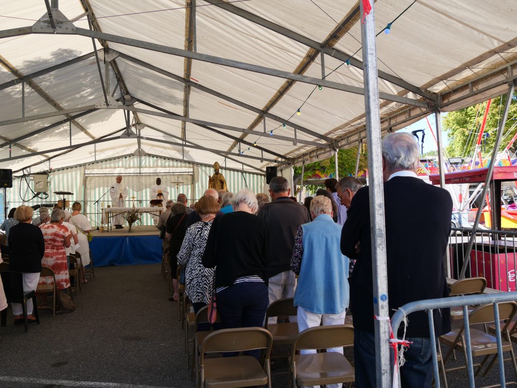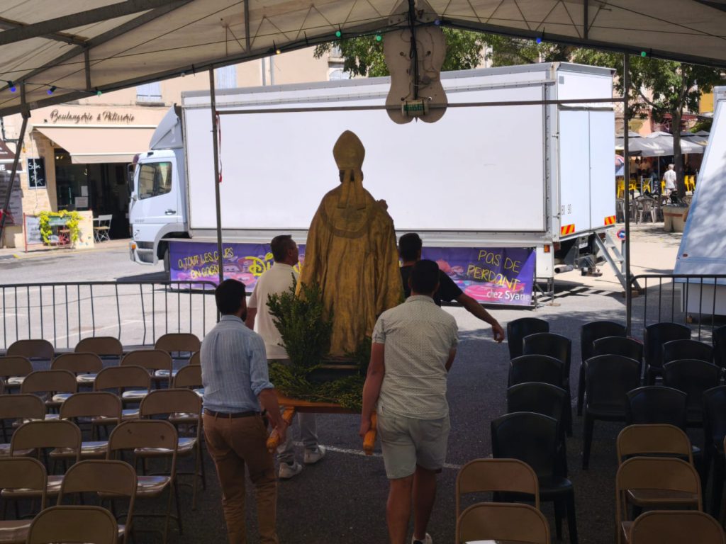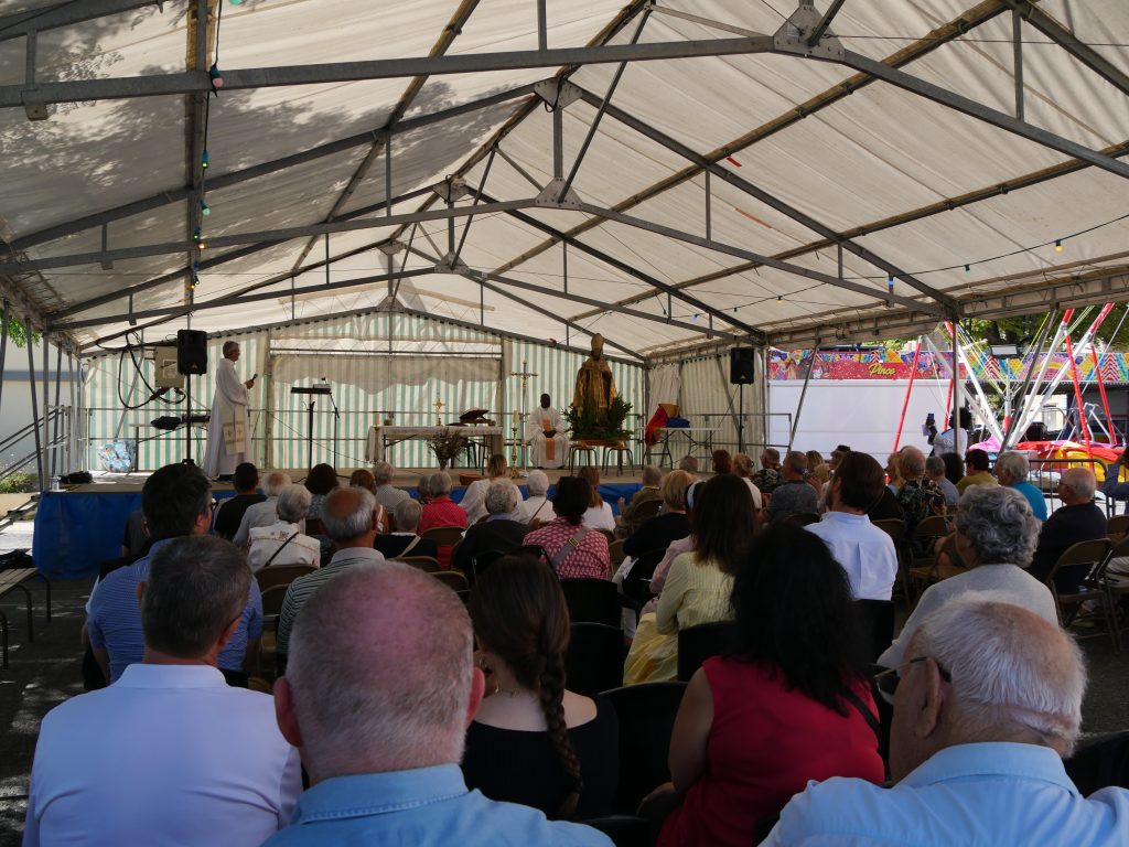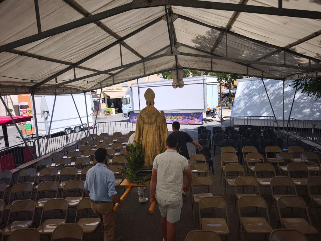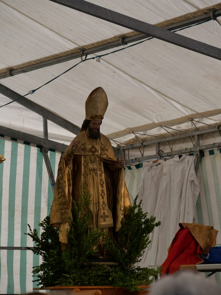 Procession qui est partie de l’église Haute jusqu’à la place du village où la messe sera célébrée.