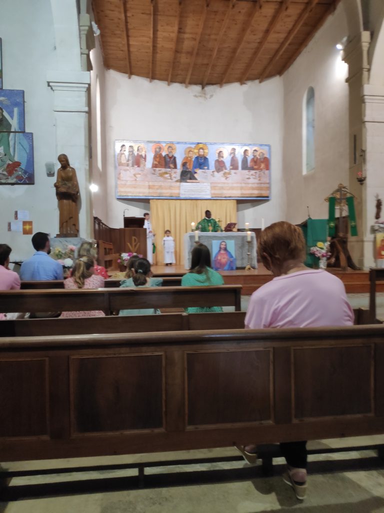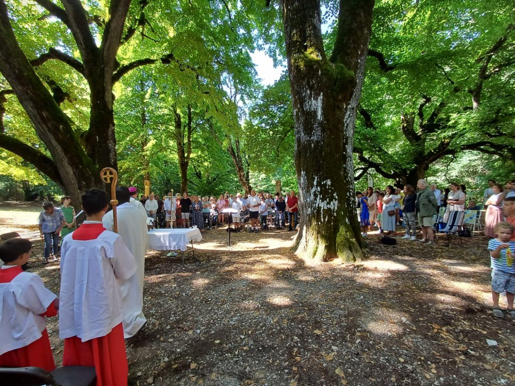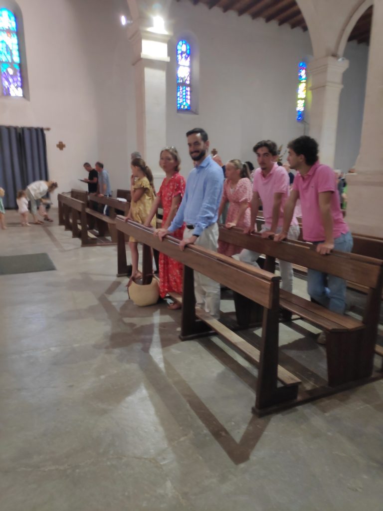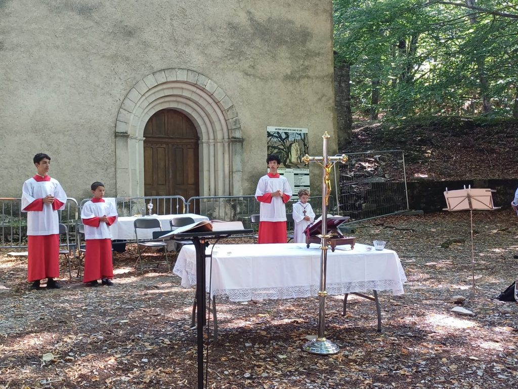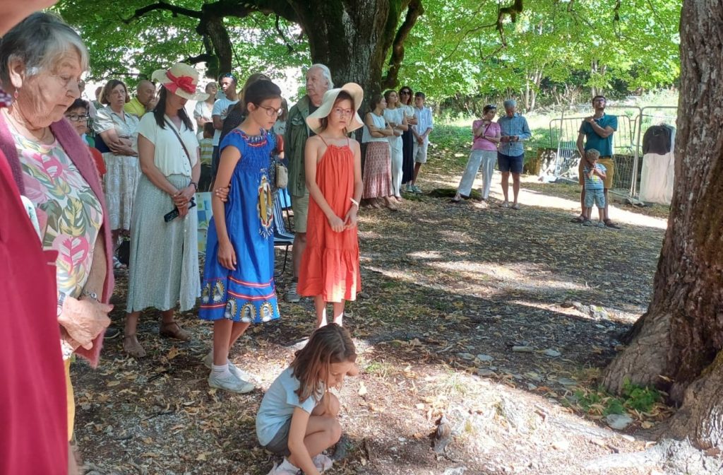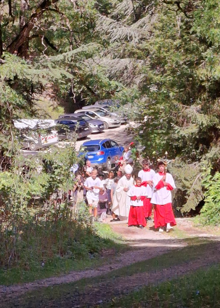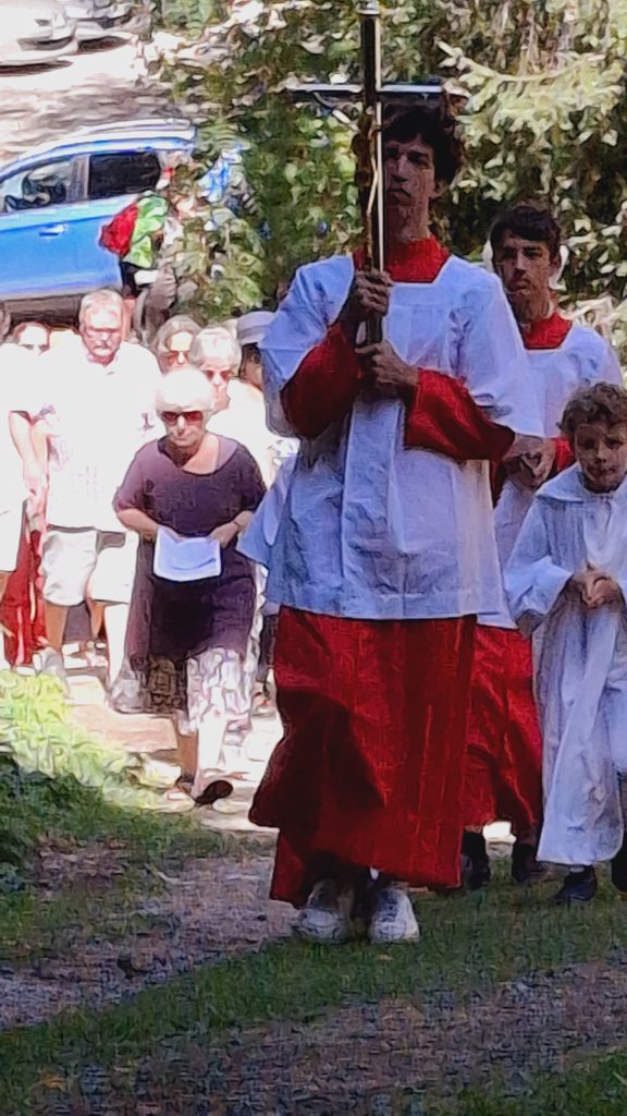 Procession qui est partie de l’église Haute jusqu’à la place du village où la messe sera célébrée.