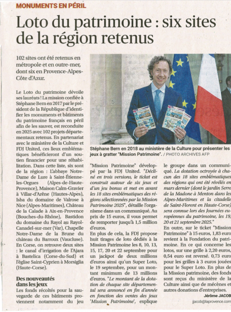 - L’Abbaye de Notre Dame de Lure choisie pour bénéficier du loto du patrimoine