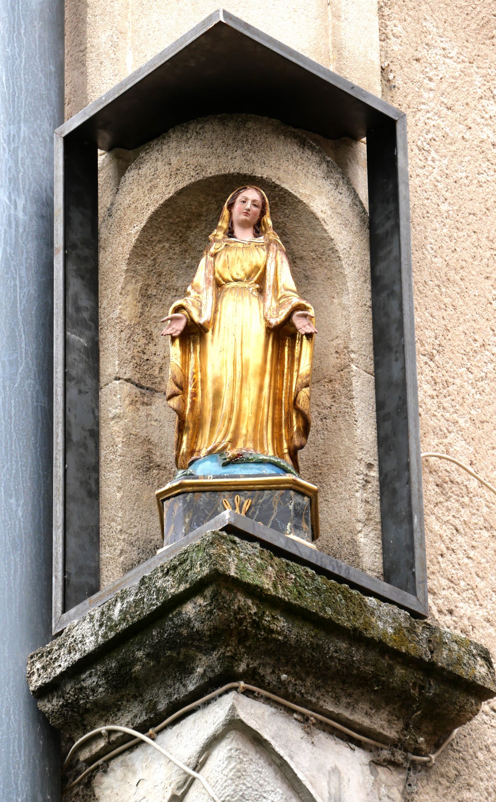 Marie et Thierry Souetre ont souhaité réinstaller une vierge dans la niche existante à l’angle du btiment des Voyageurs, rue Bourgade à Banon. Cette statue a été bénie par Monseigneur Gobilliard lors de sa visite pastorale.