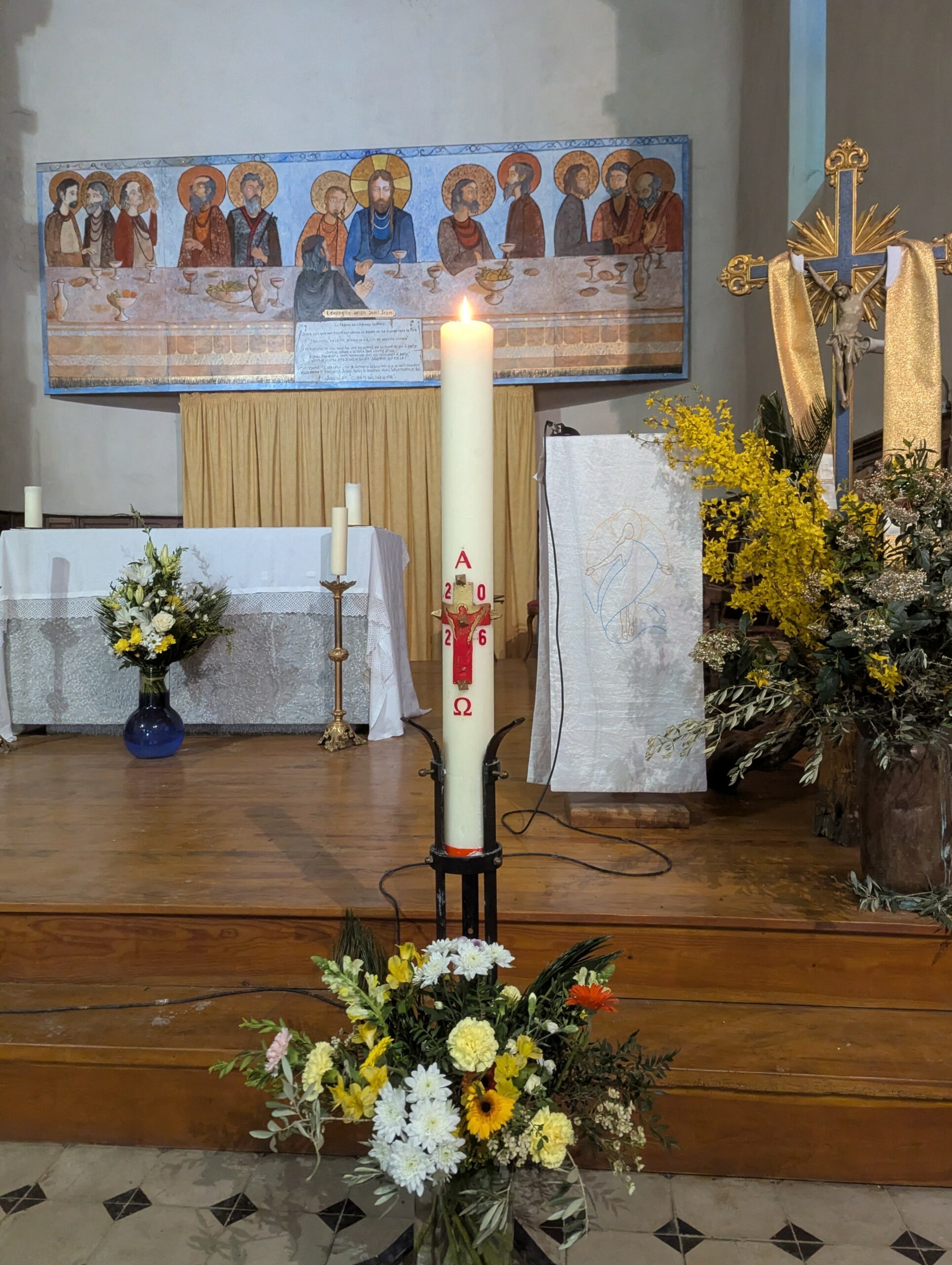 Après avoir béni le feu, le père Barthélémy a fixé dans le cierge cinq « clous » qu’il dispose en forme de croix, en disant : « Par ses saintes plaies, ses plaies glorieuses, que le Christ Seigneur nous garde et nous protège. Amen. » Le Cierge est alors allumé au feu. La procession peut commencer en suivant le … Lire la suite de samedi 4 avril 2026, Vigiles pascales à Banon